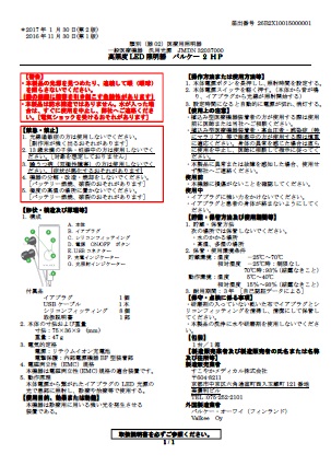 ●一般医療機器「高照度LED照明器 バルケー2 HP」に関しての詳細は下記PDFをお読みください。(画面をクリックすると大きくなります。)